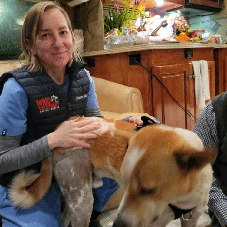 After recently undergoing surgery, Aloka “The Peace Dog” needed supportive medical care while recovering. Lauren Aldrich, DVM, MS, DACVS (SA) of Wake Veterinary Medical Center and George Ghneim, DVM, Partner Doctor leading both Wake Veterinary Medical Center and Oak Heart Veterinary Hospital along with hospital team members, had the honor to treat Aloka and aid in his ongoing care.