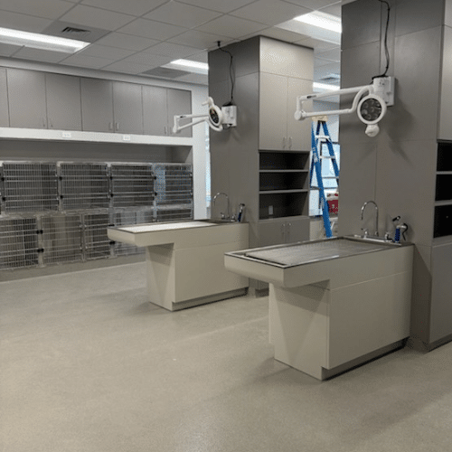 The new 5,000-square-foot facility was thoughtfully designed with both pets and people in mind. With eight exam rooms, improved workflow, and modern treatment areas, the space gives their medical team the room they need to provide attentive, unhurried care.